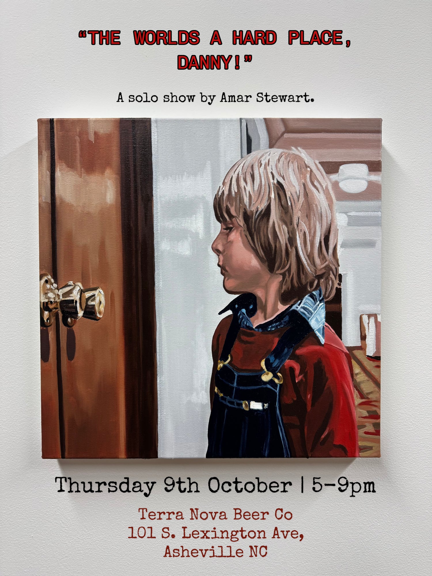 Visual artist Amar Stewart will be showcasing a new body of work celebrating Stephen Kings, The Shining. 9 oil paintings will be on display inspired by Stanley Kubrick's 1980 cinematic masterpiece.
