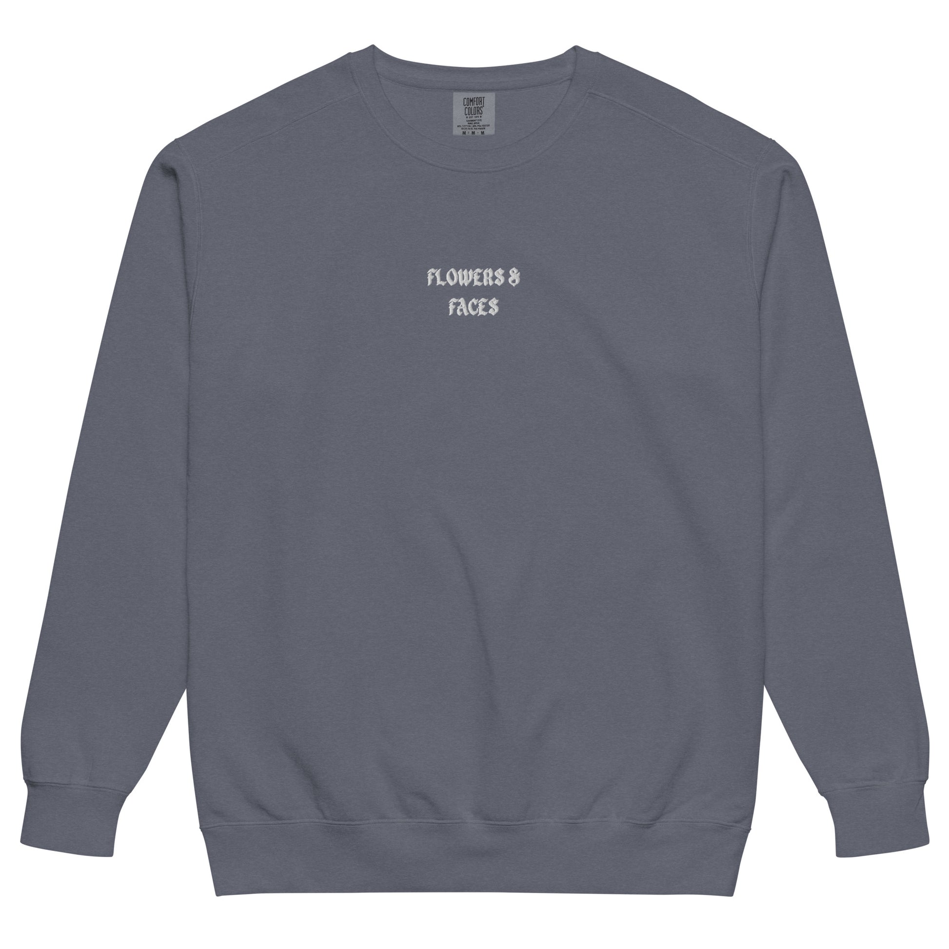 flowers + faces script logo crew sweat